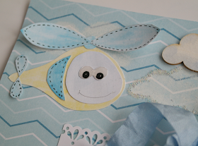 Вертолетик вырезала по шаблону из бумаги и раскрасила акварелькой. Той самой с блестками) Глазки нарисованы и покрыты глосси, для объема)
